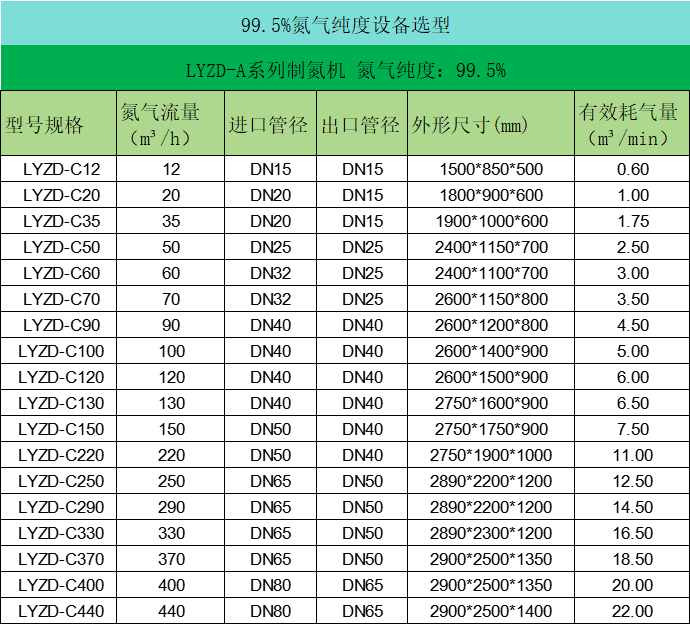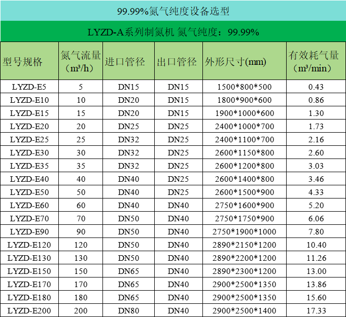 注:本表所列數據以吸附壓力0.8MPa(表壓)為原料空氣,20℃環境溫度,相對含濕度80%為設計基準,本樣本提供數據僅供參考。